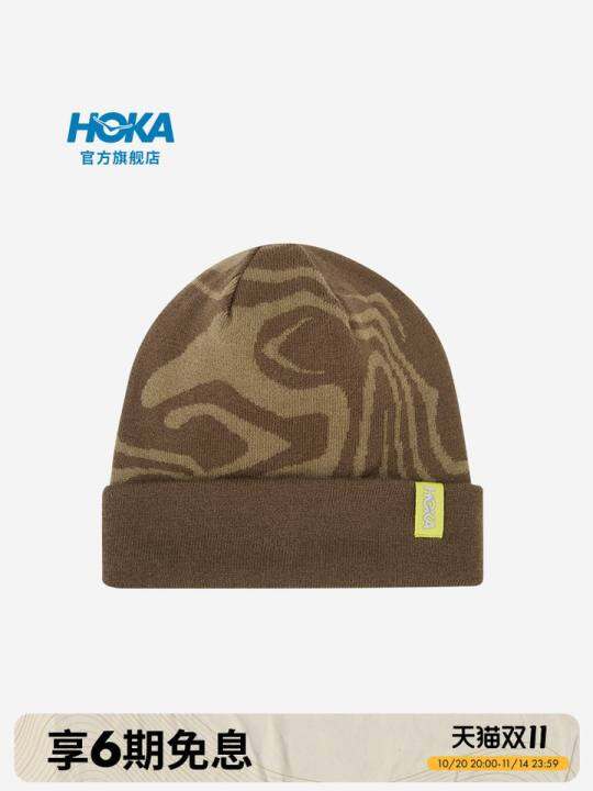 HOKA男女款冬季美利奴羊毛混纺柔软保暖透气户外运动针织无檐帽