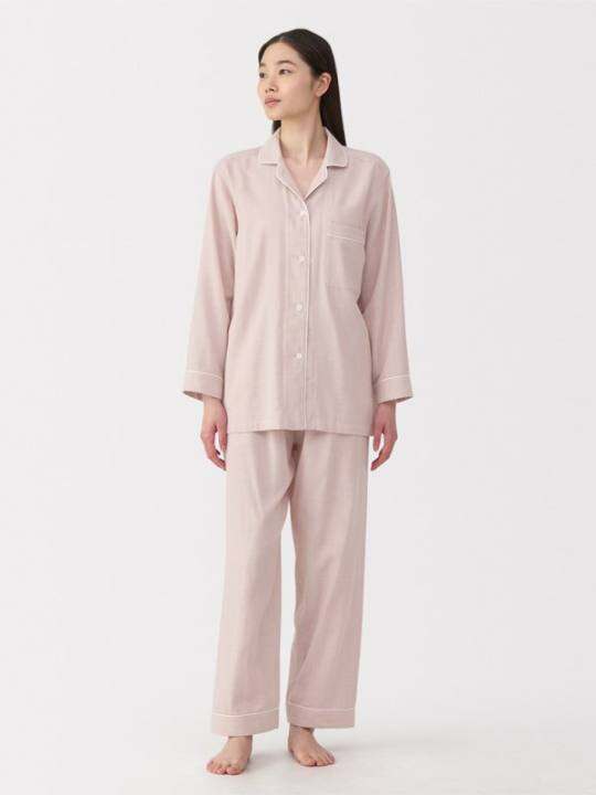 无印良品 MUJI 女式 无侧缝双层纱织长袖睡衣 家居服套装纯棉全棉