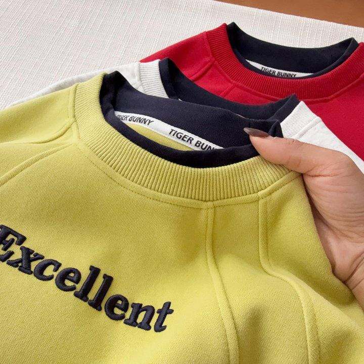 儿童假两件双面棉卫衣2025年春新款刺绣双领卫衣中大童韩版套头衫