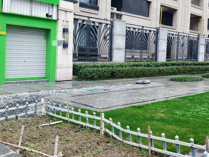 店铺前面有一片草坪,还有一个荒 ...
