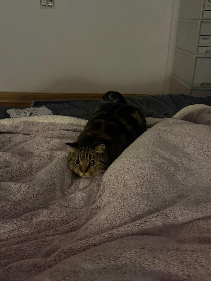 他在我家看见我就会呼噜噜,睡觉也睡在床上,我也会思考小黑究竟想不想继续回仓库抓老鼠,留在我家会不会才是对她最好的