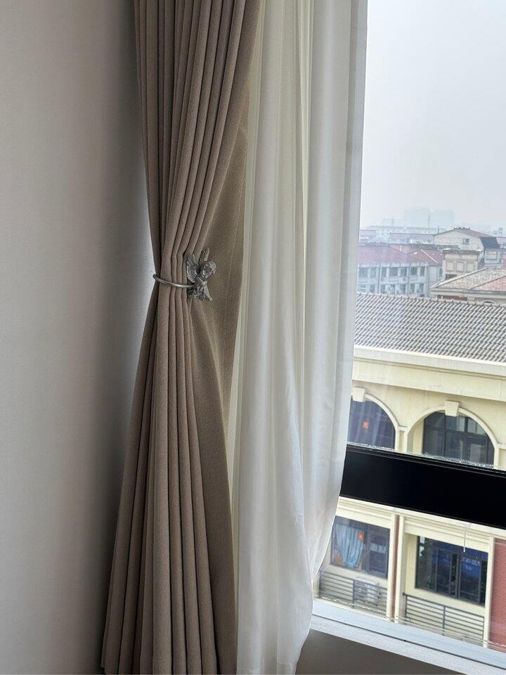 在纠结要不要把剩下的这个窗帘勾也打上,因为我其实没有地方可以打了[胖鹿笑哭] 目前还没有打算给客厅装窗帘,加上这个遮光帘非常的厚窗帘钩只能勉强勾住不能两片都勾上