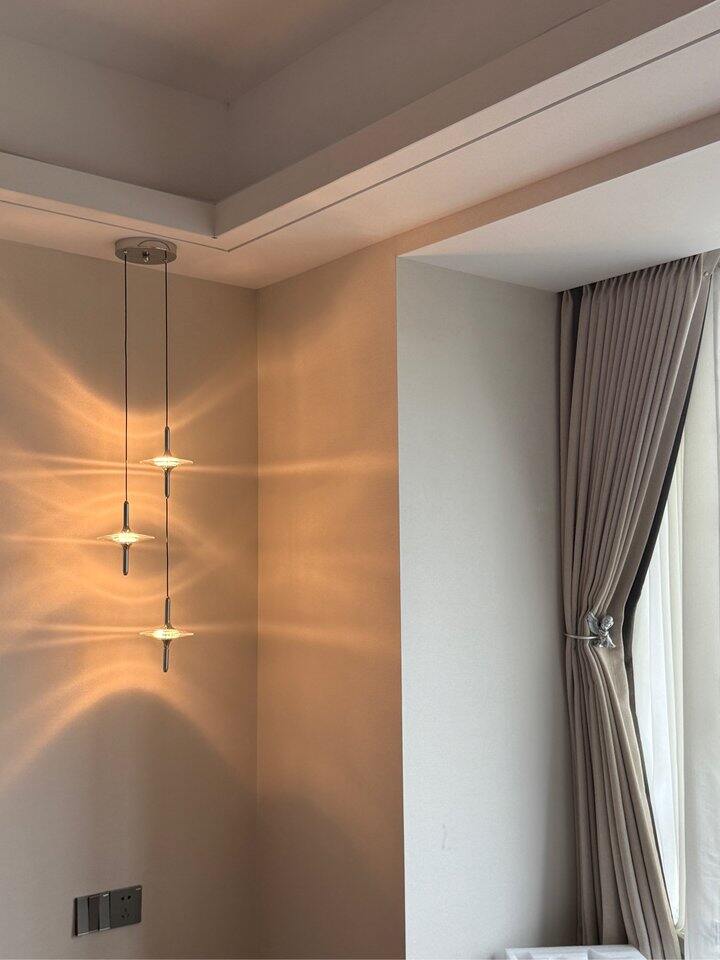 这个灯正打在我头顶,我感觉一开灯我人估计都会吓醒,所以叫物业师傅重新给我的吊顶打了个小洞