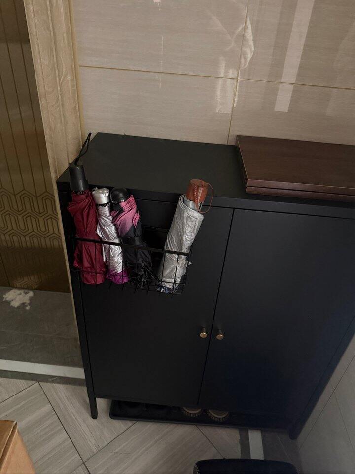 买了个铁皮柜,尺寸刚好这个深度就适合放男生的运动鞋,也不会把门顶开下面放了宜家的托盘装了滑轮 很方便