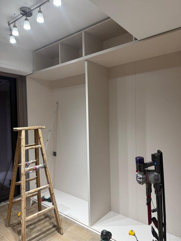 挠挠头皮 柜内金属框架已经看好了,准备用不锈钢的直接钉在柜板上,然后成本降了一大半,也问过来打柜子的师傅这种的可行性他说完全没问题,承重什么的都不用担心,ai了效果图我也能接受😅(不用那种落地的金属衣柜是我不想要她的顶板,因为我本身已经有很大的吊柜了,这个板子设计对我来说是鸡肋的,但是商家说不能去除,不锈钢的话就可以去掉商家有给我看他们现实落地的成品图,顶天立地的这种单纯就是我自己不太喜欢不然一开 ...