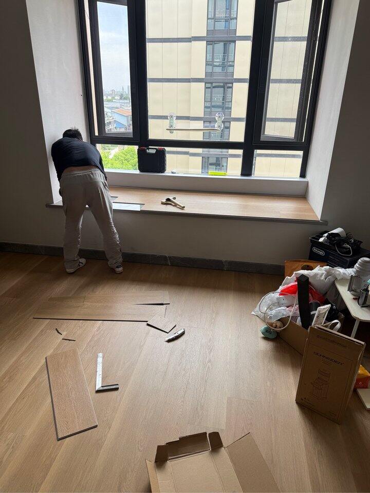 建筑垃圾太难丢了 所以剩下的板铺了飘窗,虽然差一点点,但是看不太出来[胖鹿笑哭]