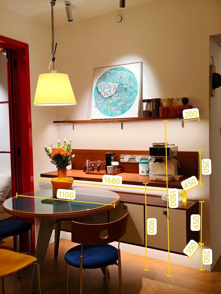 太努力了终于有心仪的餐边柜了,参考了博主的图甚至问他要了尺寸,ai了自己家的效果图,调整了一下就拿着我的手绘图纸去折磨老板了。