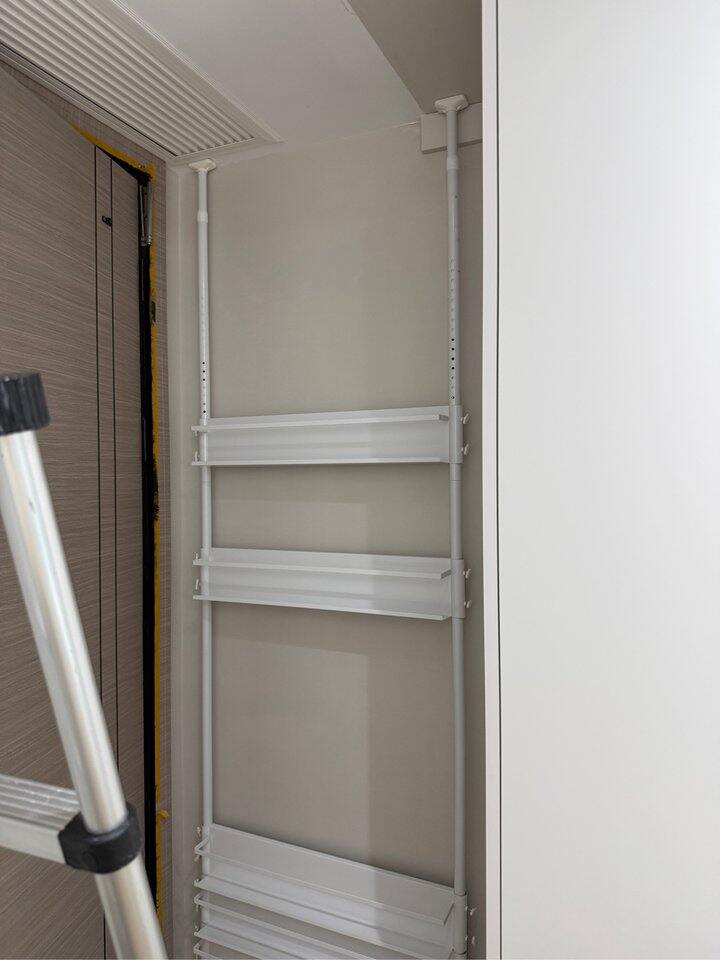 还挺能装的,基本上冬天的衣服都在这里了 跟我自己规划的一样,羽绒服现在都折叠放在底下,等冬天了再挂出来,不然挂一整年,担心肩膀上没有绒,毛茸茸的床单被套睡衣和送给都收在吊柜里,冬天了就放到现在放羽绒服的位置,