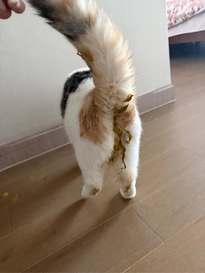 我只是把那个胶条撕下来放在我的屁股后面可能只有不到2分钟的时间,他就给我叼走了我在他后面追着他,她边跑边嚼嚼嚼就给咽了下去,我那个时候真的你妈就扣了他的喉咙,想着给他催吐,硬生生扣了5分钟都没有成功 当时他状况还好的,也很精神