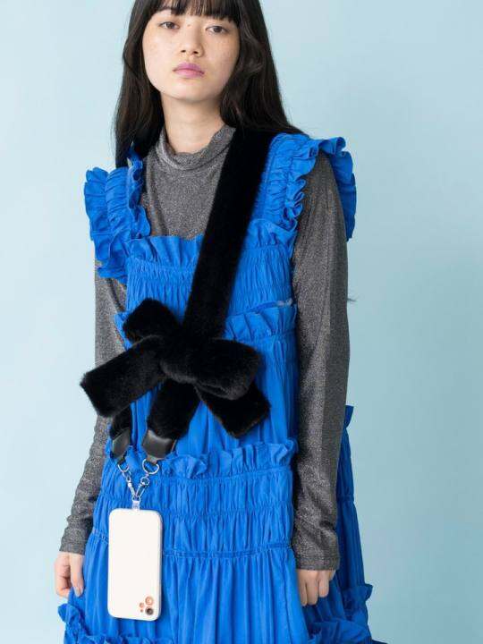 日系 手感巨软!超可爱毛毛蝴蝶结手机炼包炼多用