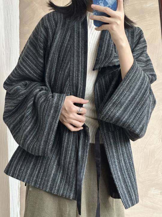 【10.20上新85折】鹭洲集沉穆秋冬日常汉服羊毛呢曲领灰黑灯笼裤