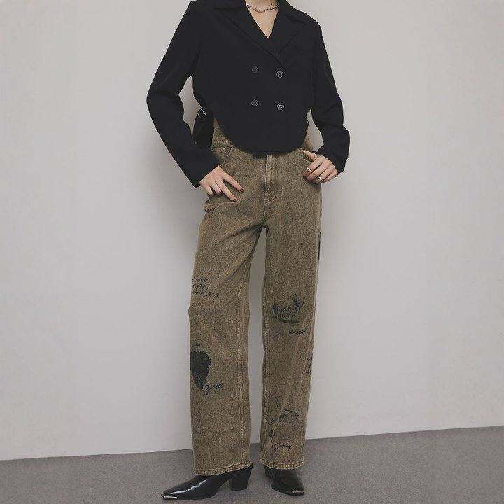 星野家日单 torowee 25新款时尚个性数码印花直筒休闲牛仔裤