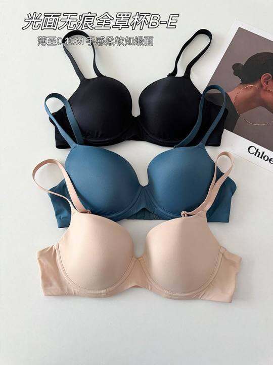 醉爱光面~无痕超软杯薄款上托侧收全罩杯文胸大胸显小简约内衣