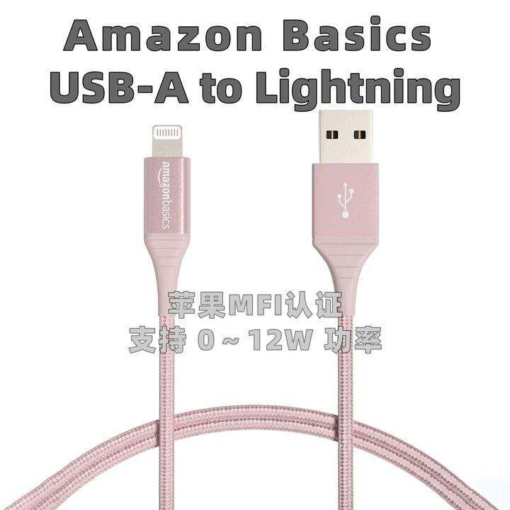 Amazon Basics 苹果 MFI 认证数据线 1.8 米 亚马逊USB口 支持5~12W 全新未拆封 编制 编织数据线