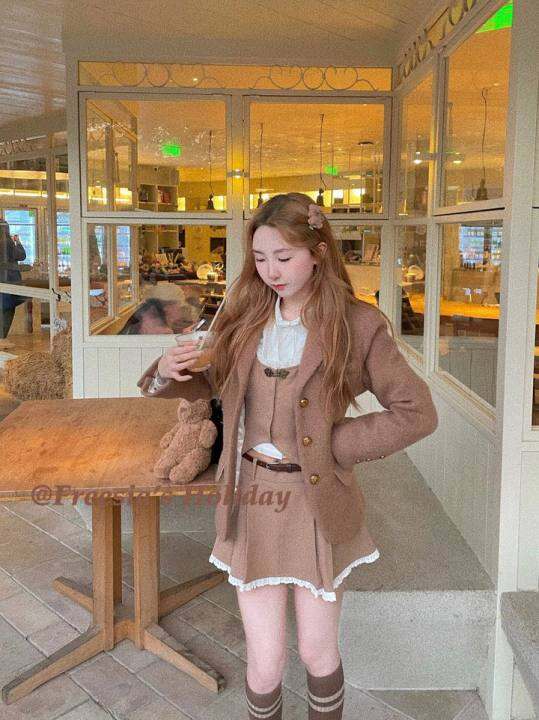小苍兰|恋上粉棕系|50羊毛棕色毛呢西装学院风复古法式少女奶棕色