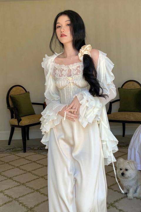 sorozien芍子【维堤里欧】复古宫廷风泡泡袖缎面中长款连衣裙女夏