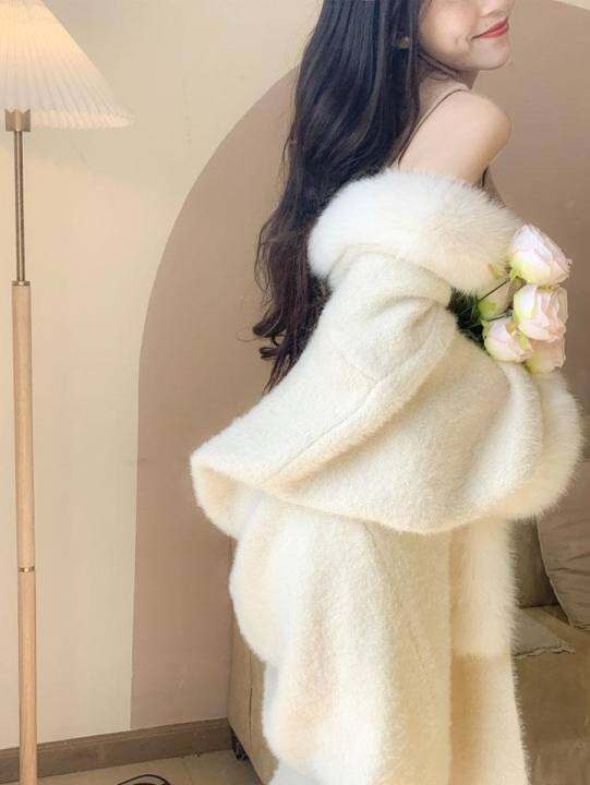 猫子艺定制仙气冬款加厚皮草防狐狸毛貂绒加大毛领长款外套开衫