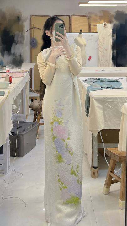 晓公子花自眠|一片式复古民国风春夏新款 绣球花真丝织银长旗袍
