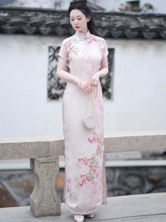 【烟雨】全开襟古法旗袍新款2023高端春夏曳地长款复古民国连衣裙