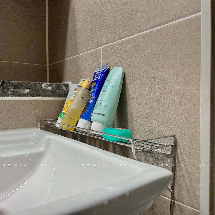最近买的最满意的浴室收纳,之前一直没看到合适的收纳工具,洗漱池离淋浴间玻璃有一点空隙。正好放这个,卡上去正好,不会占用台面的空间。