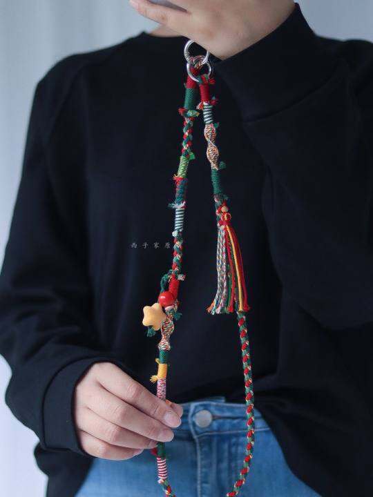 圣诞节拼色手机挂绳棉绳编织多用途挂脖斜挎手机炼相机背带
