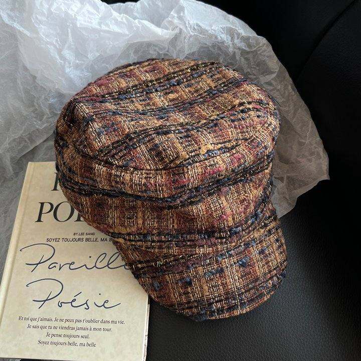 TAAK新款英伦风粗毛呢复古格子平顶帽海军帽子女秋冬天鸭舌报童帽
