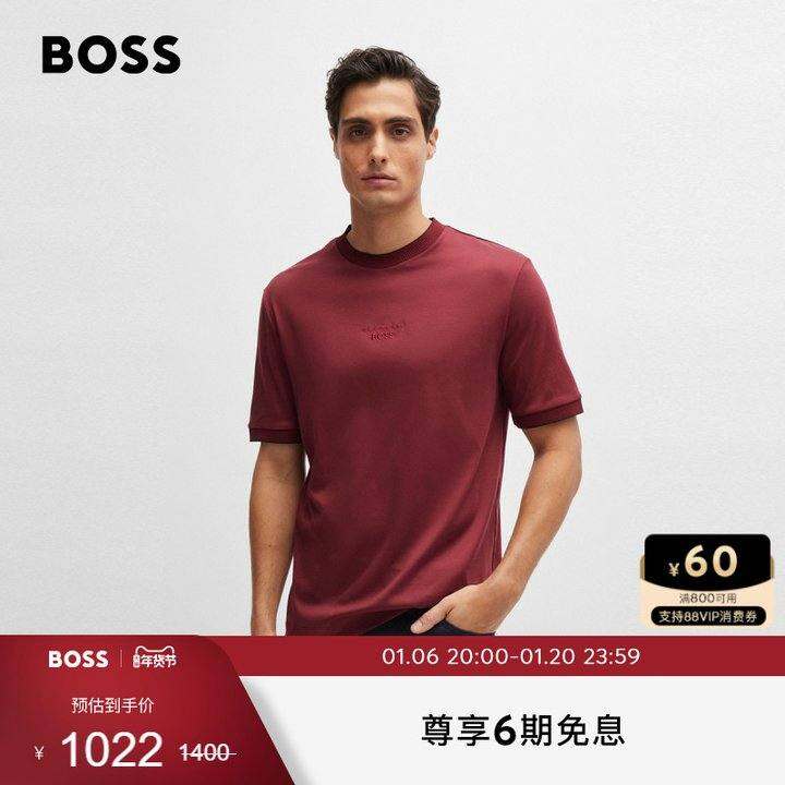 【保时捷联名 100%棉】BOSS男士秋季休闲丝光棉短袖T恤