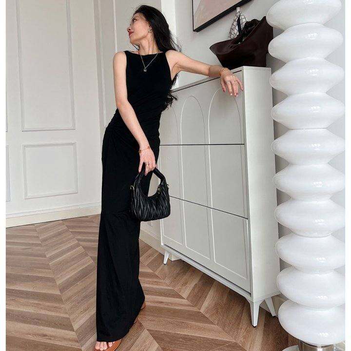 猫境高级设计感捏褶褶皱收腰显瘦加长休闲气质女神无袖背心连衣裙