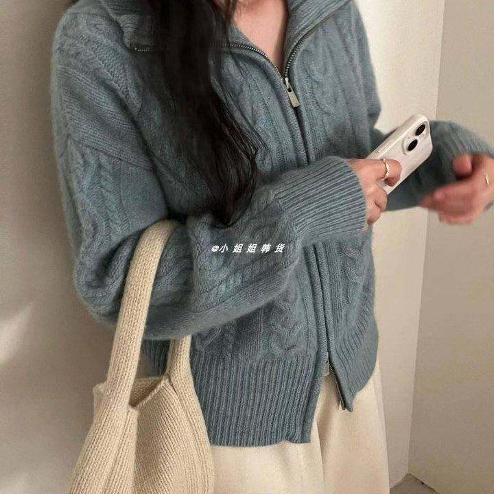 高品质拉链针织开衫浣熊绒加厚精品2024韩国新款毛衣高级感