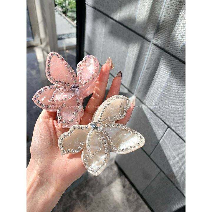 小象【美到失语】高级三角梅醋酸花朵水钻抓夹鲨鱼夹气质轻奢发夹