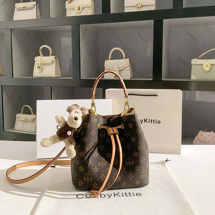 CuebyKittie正品小众复古印花水桶包包女2024新款轻奢单肩斜挎包