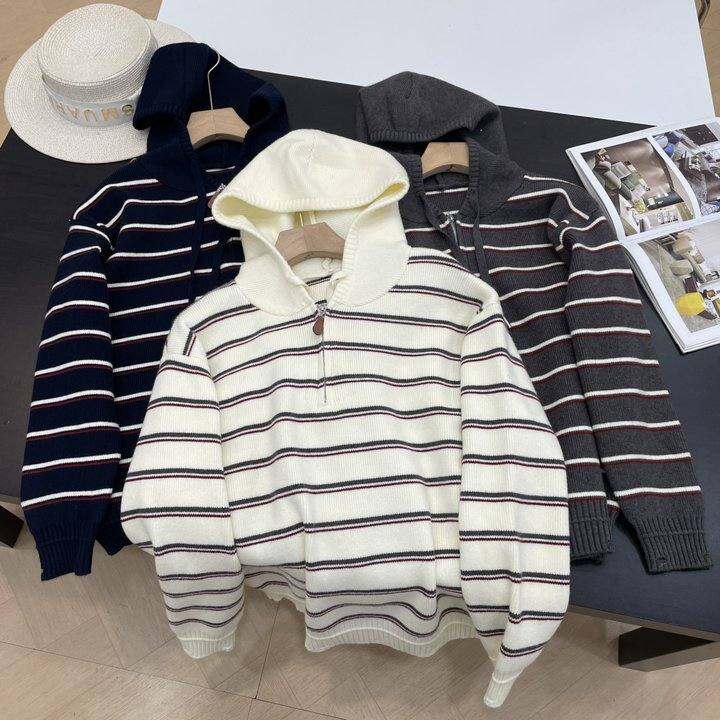 【楠】拼接加厚连帽条纹长袖毛衣针织衫上衣女百搭秋冬
