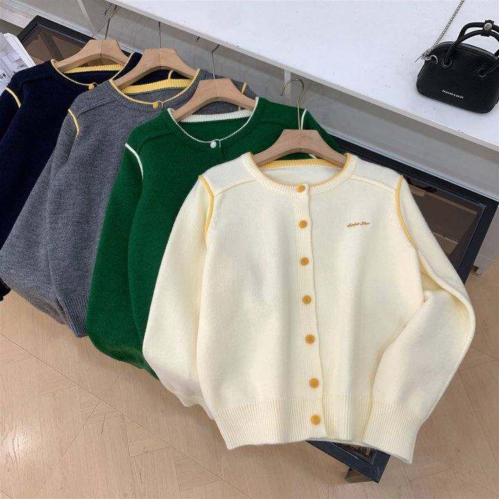 【新】安迪绒加绒毛衣女秋季新款新款单排扣毛衣开衫外套