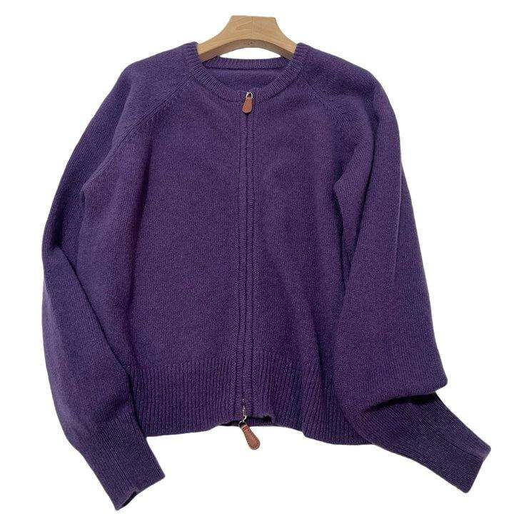 轻奢面料 韩版针织拉炼开衫女圆领毛衣外套 宽松型