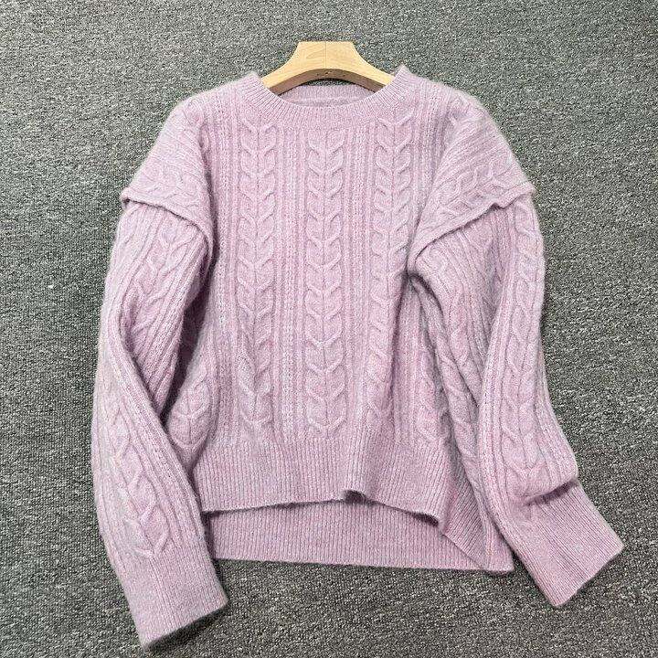韩单尾货羊毛羊驼毛覆古圆领套头麻花毛衣女宽松针织衫上衣