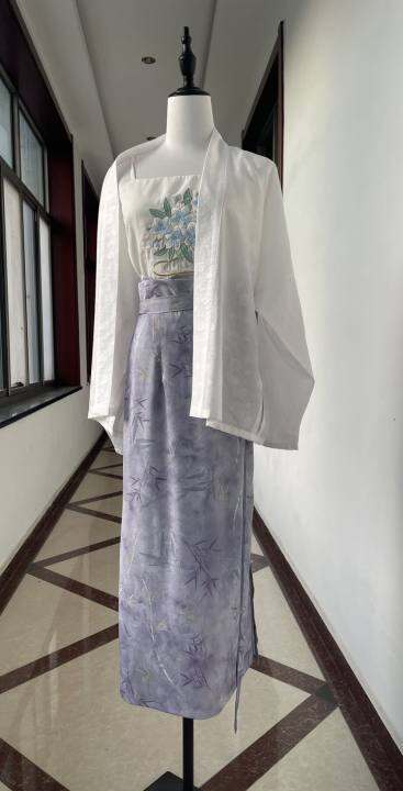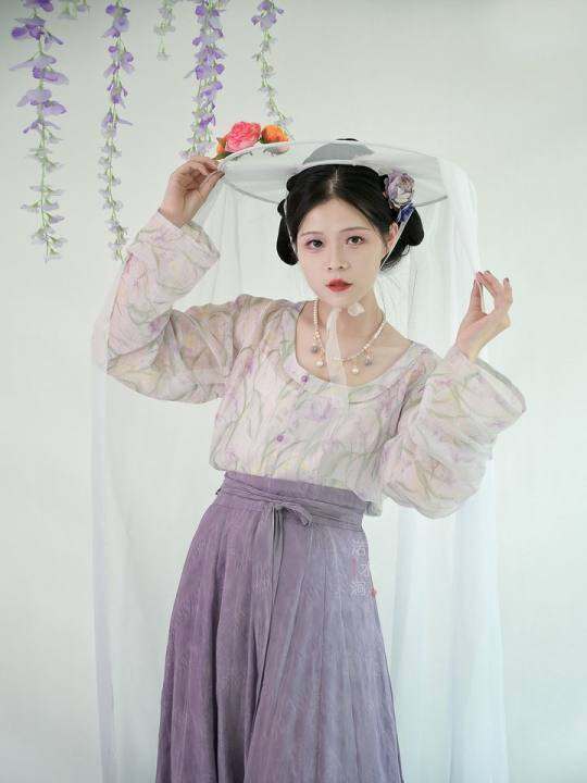 渃水涧【紫萱】原创汉服 唐制衫印花天丝垂领衫十破齐腰裙
