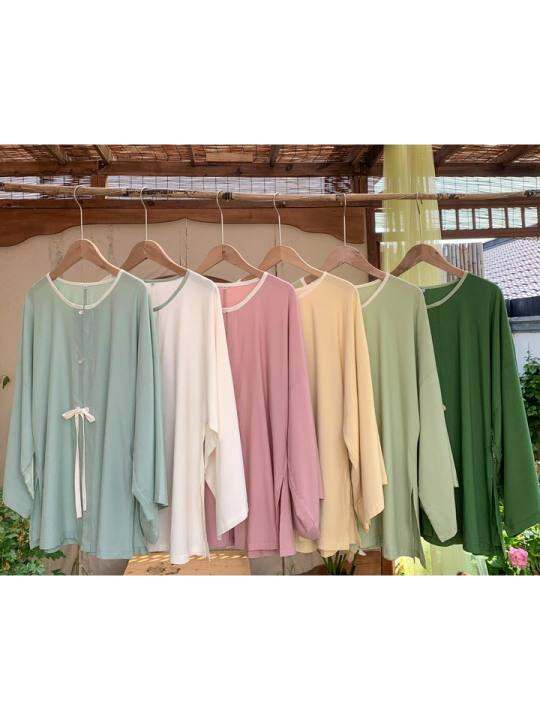 又是一颗好白菜,买的银色,但其实感觉带点紫,很百搭的一款飞机袖。本来想买来搭女儿红的,看🍠很多人都这么搭。到手后试了一下内搭米黄色铃兰吊带,下穿匣珍汉庭的暮山紫,自认为感觉蛮和谐的。(暮山紫的链接一直发不出来,等下再试试)