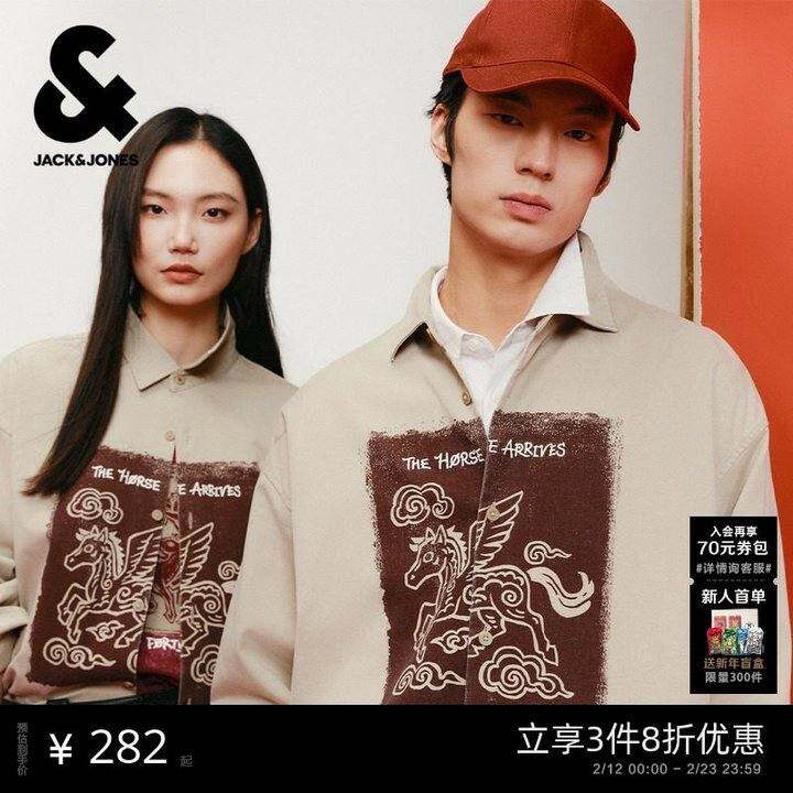 杰克琼斯男装春季马年生肖新年款马图案印花休闲宽松长袖衬衫外套