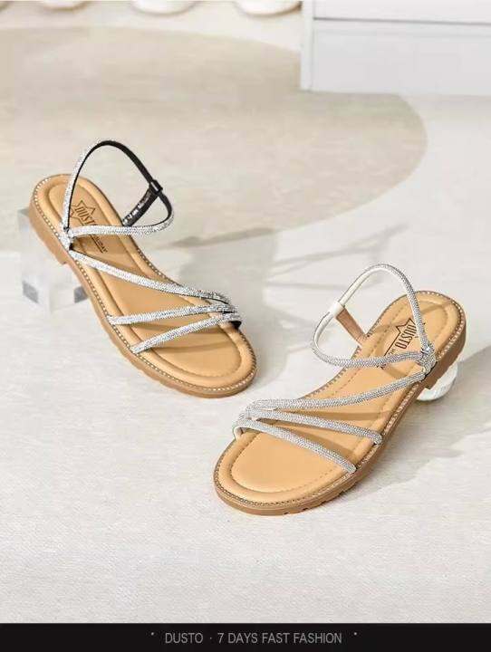 大东绑带凉鞋23夏季新款甜美风低跟方跟水钻露趾细带女鞋23X3488