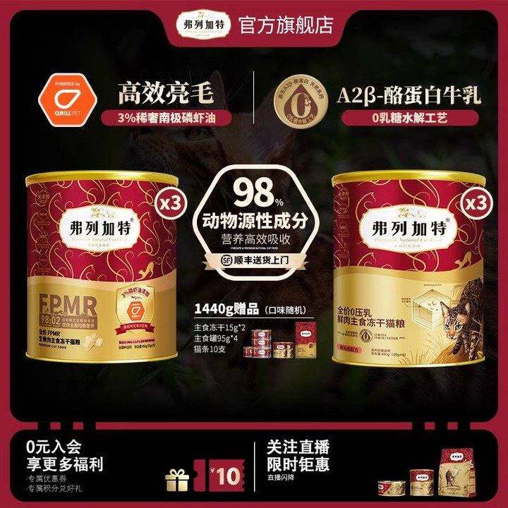弗列加特生骨肉全价主食冻干猫粮鲜鸡肉猫咪囤货480g*3桶装