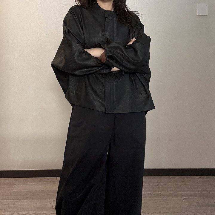 蚕夏新中式桑蚕丝黑色通勤夹克外套