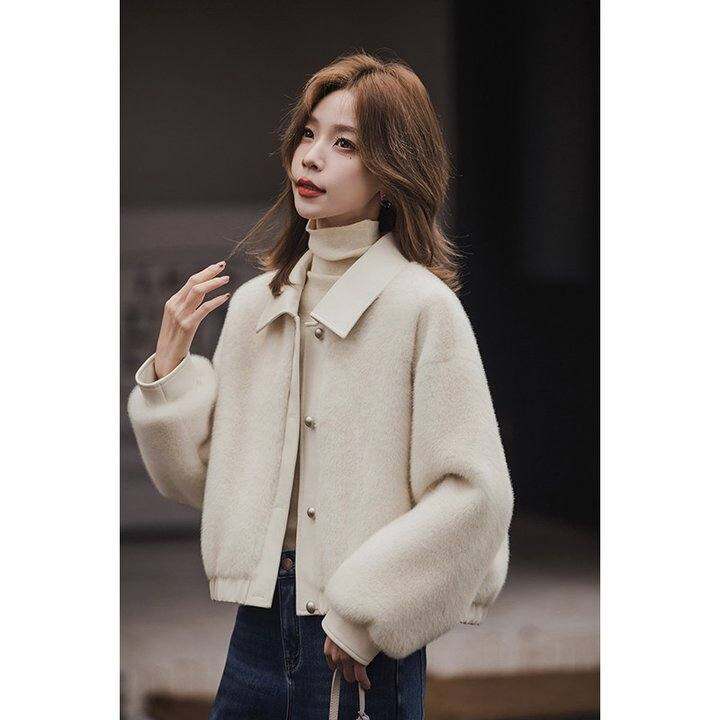 小谷粒仿皮毛一体外套女2025年冬季新款气质翻领宽松加厚短款上衣