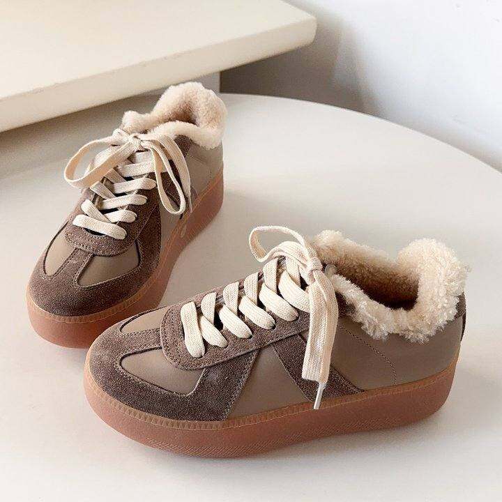羊羔毛版 真皮福利 牛皮阿甘鞋德训鞋厚底休闲鞋女鞋防滑保暖奶咖