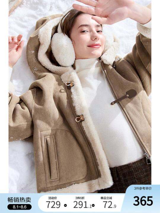 betu百图加厚皮毛一体仿羊羔绒外套女短款2024年冬季新款保暖夹克