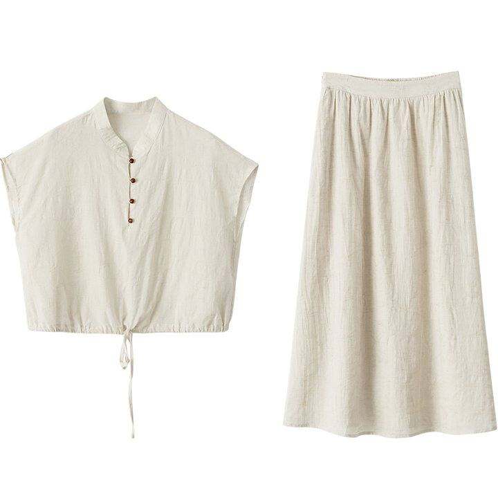 夕蒙2024新款夏设计感小众新中式短袖气质polo领衬衫半身裙套装女