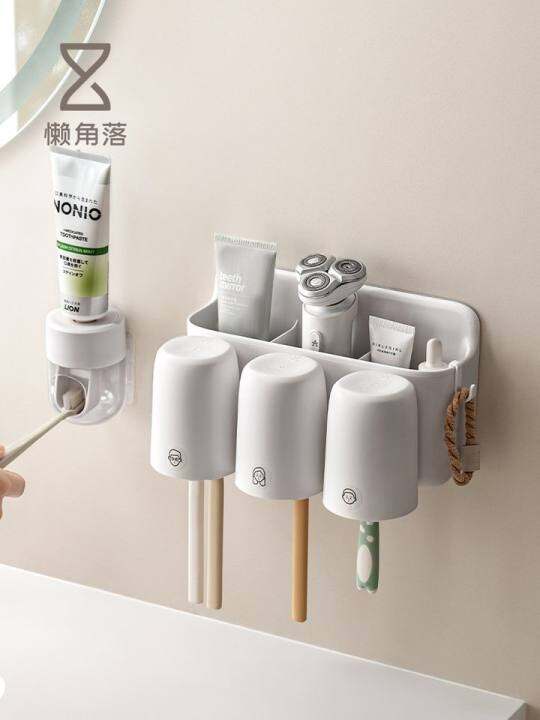 懒角落牙刷置物架漱口杯子刷牙杯壁挂式免打孔牙膏卫生间收纳挂墙