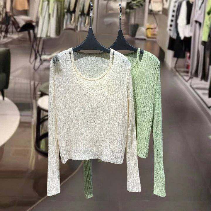 假两件吊带露肩针织衫女2025春新款设计感小众宽松长袖慵懒风上衣