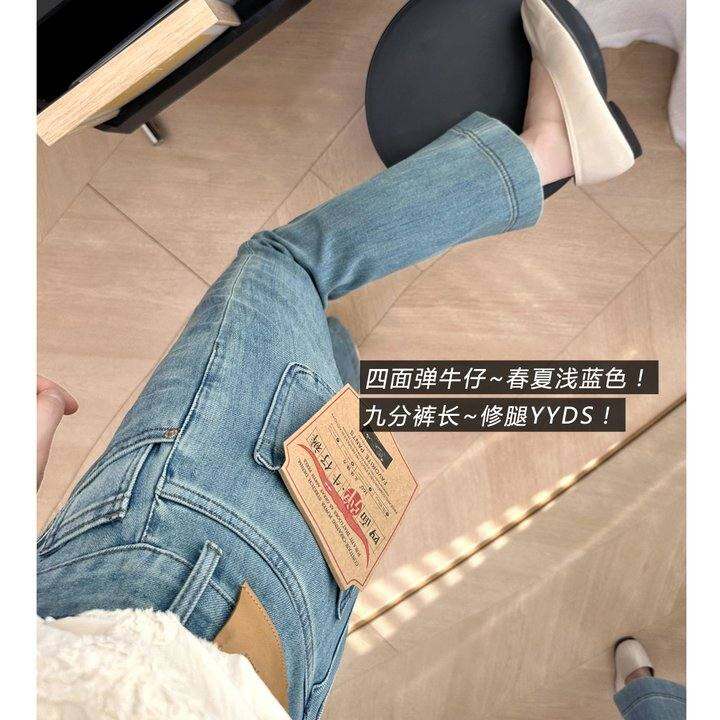 版型夸上天!春秋季浅色四面弹微喇叭裤女小个子薄款夏显瘦九分裤