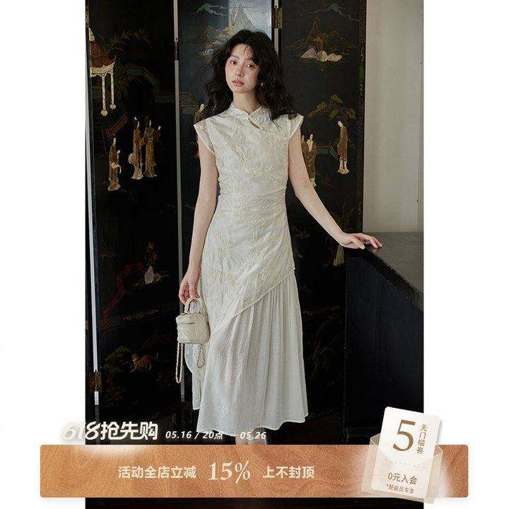 夕蒙2025新款春夏国风旗袍设计感小众小个子新中式收腰连衣裙女
