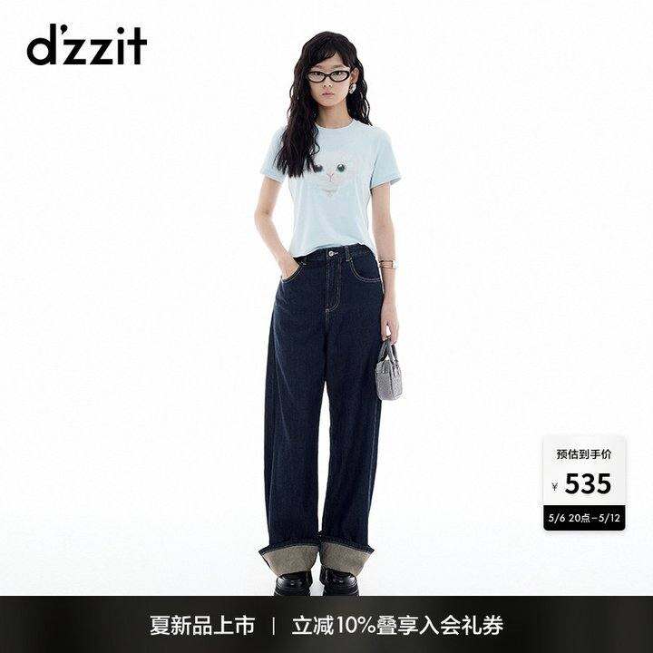 dzzit地素短袖T恤25夏新款植绒印花可露丽猫咪三色上衣女
